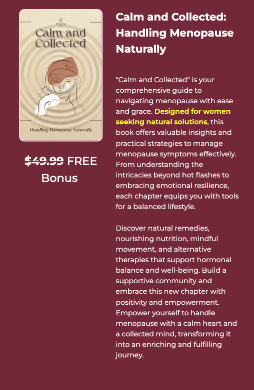 With every 3-bottle package of MenoSoothe, you will receive 2 bonus books for free. Or, to get an even better value, you can opt for the 6-bottle package, which also includes the 2 bonus books and free shipping.